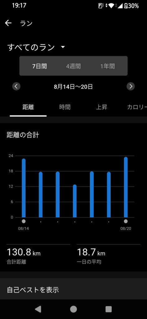 この週は、2日間の仕事の休みでジョグ4回とポイント練習3回。珍しくよく走ることができた週だった。