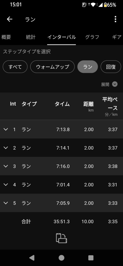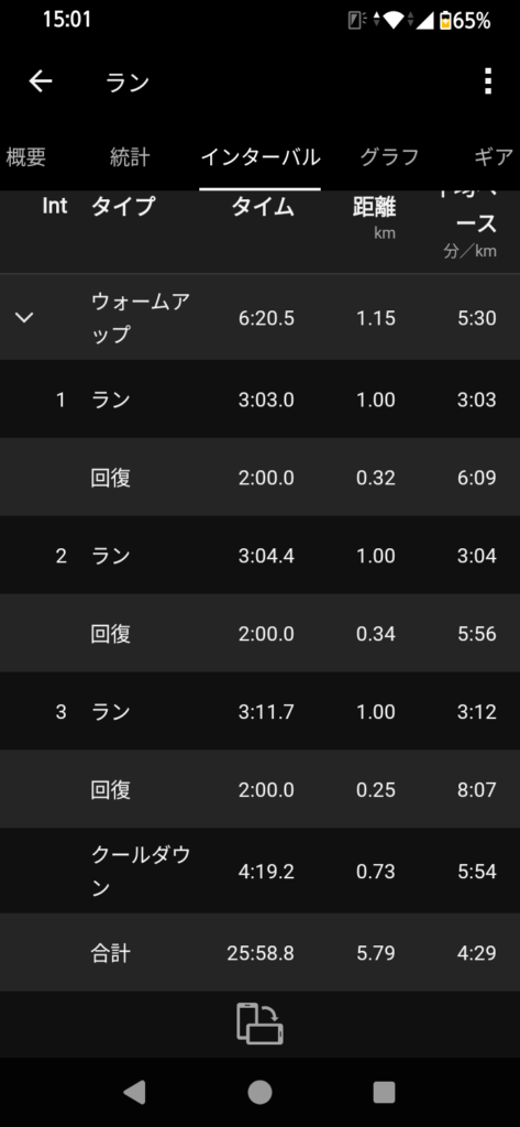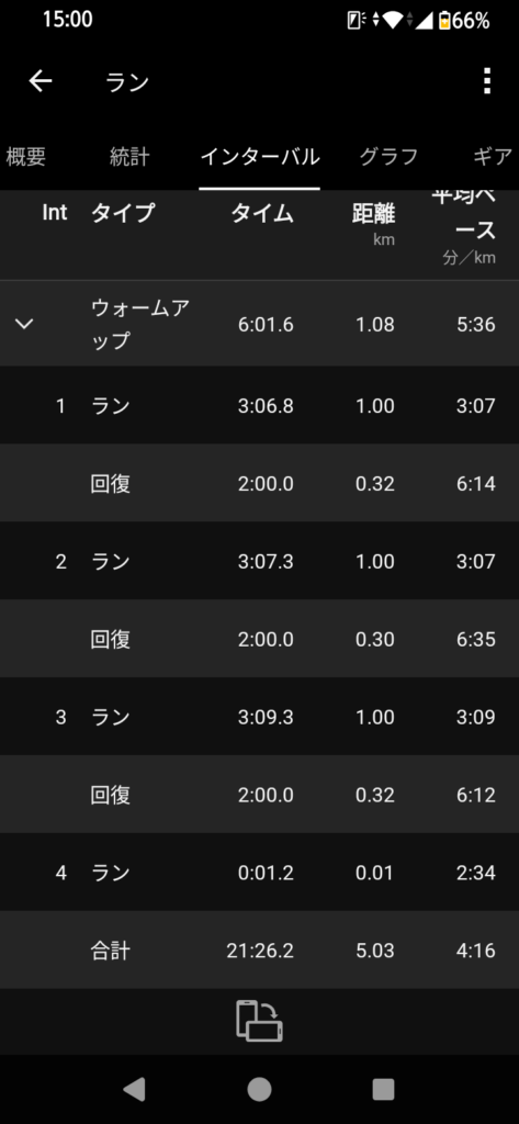 7本やるつもりだったけど、4本目でペースを上げざるお得なくて、ペースを上げて5本に変更。