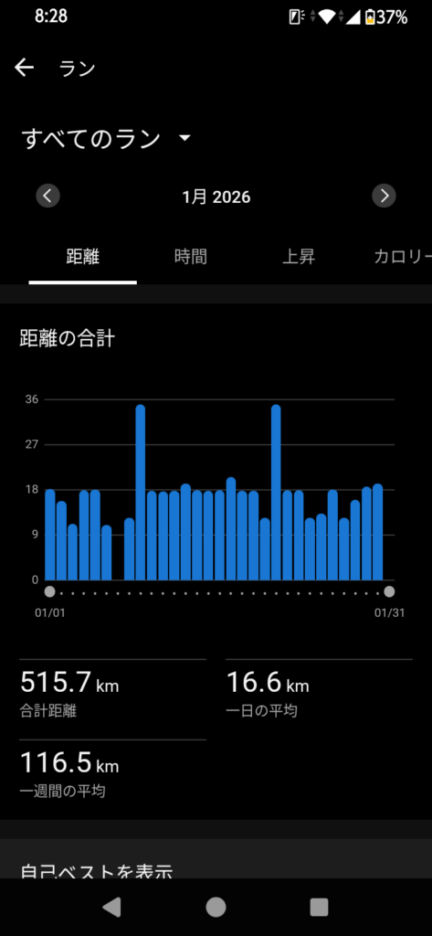 結果、12月は482km、1月は515kmと走ることが出来た。月間走行距離を走ったからと言って後半の失速を防ぐことが出来るとは限らない。ただ私の場合、秋のレースでは想定以上に後半粘ることが出来たので、レースでの好走を信じたい。